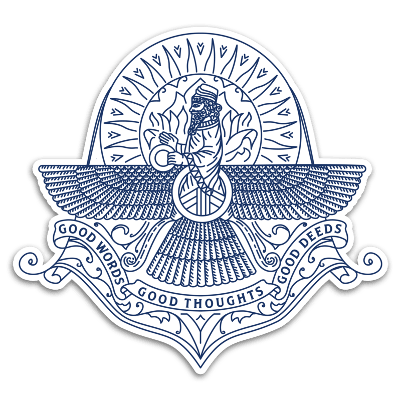 Embrace tranquility and enlightenment with our Faravahar Wisdom Sticker. The iconic Faravahar takes center stage, surrounded by radiant flames and the motto "GOOD WORDS, GOOD THOUGHTS, GOOD DEEDS." This motto reflects the core tenets of Zoroastrianism, one of the world's oldest religions, which originated in Persia.